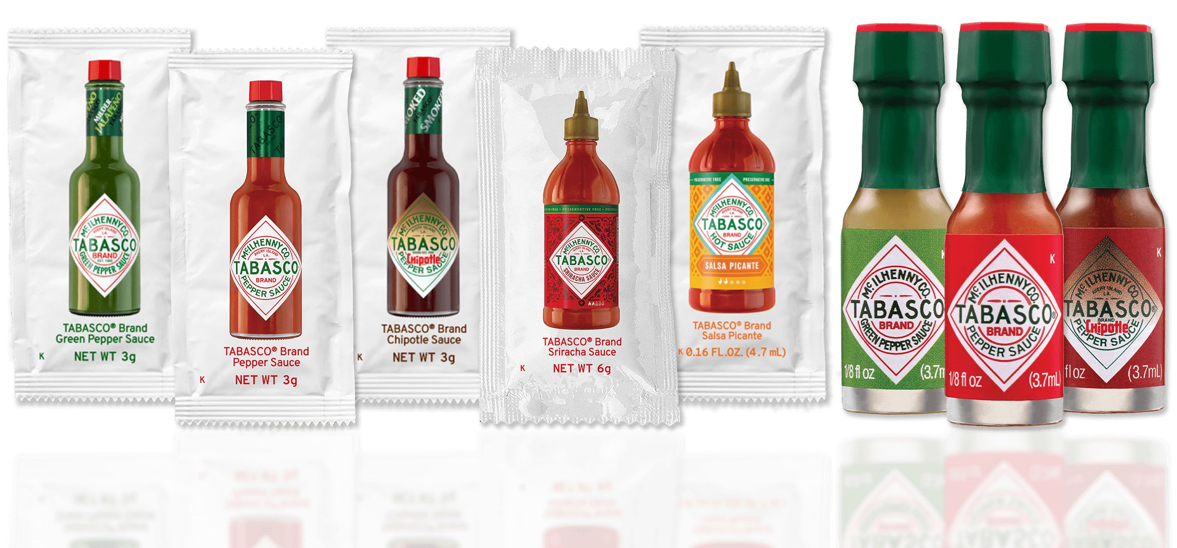 TABASCO® Brand portion packets are the perfect solution for single-serve hot sauce. From our premium barrel-aged Original Red Sauce to flavored hot sauce packets with Green Jalapeño and Chipotle — we have flavors for every cuisine.